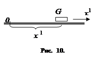 Уравнения движения объекта. Начнём с рассмотрения одного простого примера. Пусть G – тело, которое может совершать прямолинейное движение (рис. 10). Массу этого тела будем предполагать постоянной и равной m, а его размерами будем пренебрегать (т. е. будем считать G материальной точкой.) Координату тела G (отсчитываемую от некоторой точки O той прямой, по которой оно движется) будем обозначать через x1. При движении тела G его координата x1 меняется с течением времени. Производная
