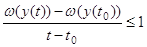 Если мы будем двигаться из точки x0 до точки y(t) (по рассматриваемой фазовой траектории), то затратим на это движение время t ─ t0. Двигаясь затем из точки y(t) оптимально, мы затратим на движение от точки y(t) до точки x1 время T(y(t)). В результате мы совершим переход из точки x0 в точку x1, затратив на этот переход время (t ─t0)+T(y(t)). Но так как оптимальное время движения от точки x0 до точки x1 равно T(x0), т. е. равно T(y(t0)), то T(y(t0))≤(t ─t0)+T(y(t)). Заменяя функцию T через ω (см. (1.8)) и разделив обе части неравенства на положительную величину t ─t0, получаем отсюда