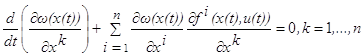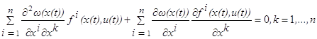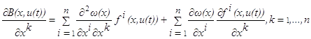 Эти два соотношения означают, что функция B(x,u(t)) достигает в точке x=x(t) максимума, и потому её частные производные по x1,…,xn обращаются в нуль в этой точке:
