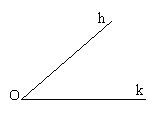 Угол с вершиной О и сторонами h и k. Развёрнутый угол с вершиной С