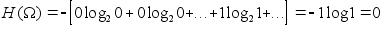Если вероятностное пространство не имеет определенности, т.е. какое-то из Pi=1, а остальные равны 0, то энтропия равна нулю.