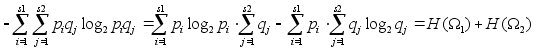 С точки зрения качественного анализа максимальная энтропия композиционного вероятностного пространства достигается тогда, когда испытания независимы. Найдем энтропию композиционного пространства для случая независимых испытаний.