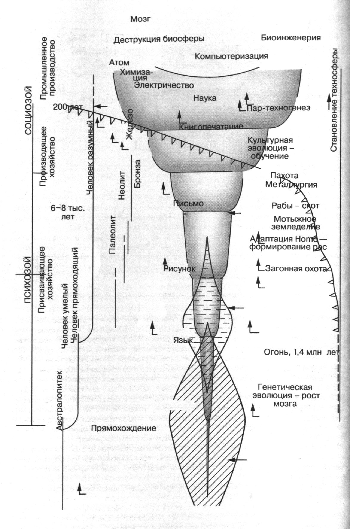 С развитием науки, технологий развивается интеллект, растет энерговооруженность, повышается уровень информационного обмена между людьми. Человек отличается от своих предшественников прямой по-: ходкой, творческим интеллектом, позволяющим создавать все более и