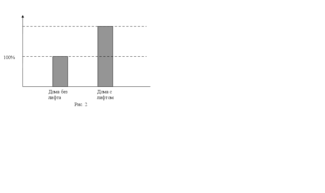 В первом квартале 1995 года квартплата в Москве в Омах с лифтом была на 100 % выше квартплаты в домах без лифта (рис. 2). Во сколько раз квартплата в домах с лифтом была выше квартплаты в домах без лифта?