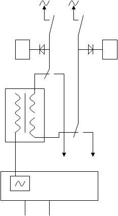Напряжение вызывного тока снимается с СВА на первичную обмотку трансформатора ТР, повышающего напряжение до 100 В. схема распределения напряжения вызывного тока по стативам АТС однопроводная, поэтому один конец вторичной обмотки ТР подключается к минусу батареи. Для РСЛИ-2 необходимо напряжение вызывного тока с минусом и плюсом, поэтому одна из вторичных обмоток ТР подключается к плюсу батареи.