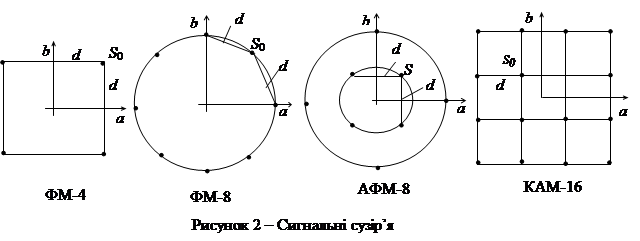 – у разі ФМ-4 сигнальні точки розміщені рівномірно на колі з кроком 90°;