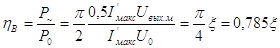 Потребляемая от источника питания выходной цепи мощность P0и отдаваемая усилительными элементами мощность P~ за каждый из полупериодов, а следовательно, и за весь период будут равны: