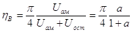 Для определения зависимости кпд каскада мощного усиления с триодами в режиме В от сопротивления нагрузки используем выражение (4), которое после замены U0 через Uам+Uост и деления числителя и знаменателя полученного выражения на Uост примет вид