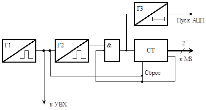 В состав канала сбора аналоговых данных входит также ряд импульсных узлов, которые синхронизируют работу его составных частей и управляют работой АЦП.