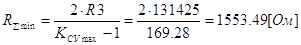 , определим минимальное значение суммарного сопротивления резисторов R1 и R2.