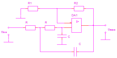 В задании на проект не оговорены требования к АЧХ фильтра, поэтому тип фильтра низких частот (ФНЧ) выберем самостоятельно. Для реализации ФНЧ используем RC-фильтр типа Баттерворта 2-го порядка.
