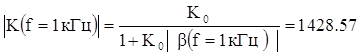 , рассчитаем необходимый коэффициент передачи цепи отрицательной обратной связи по напряжению