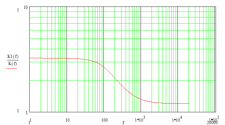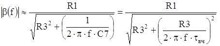 , поэтому реальная АЧХ усилителя будет рассчитываться по формуле: