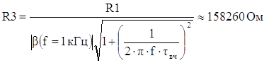 . Определим необходимый коэффициент передачи цепи отрицательной обратной связи по напряжению исходя из формулы