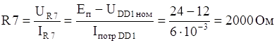 Сопротивления резистора R7 и его номинальная мощность рассчитываются исходя из выбранного значения напряжения питания микросхемы и напряжения питания, заданного в ТЗ.