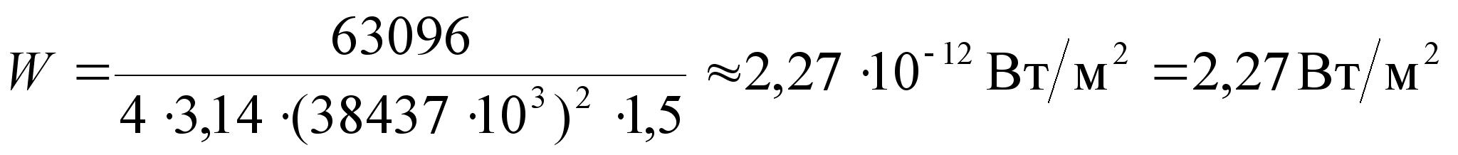 Определим значение плотности потока мощности ЭМВ, создаваемой у поверхности Земли: