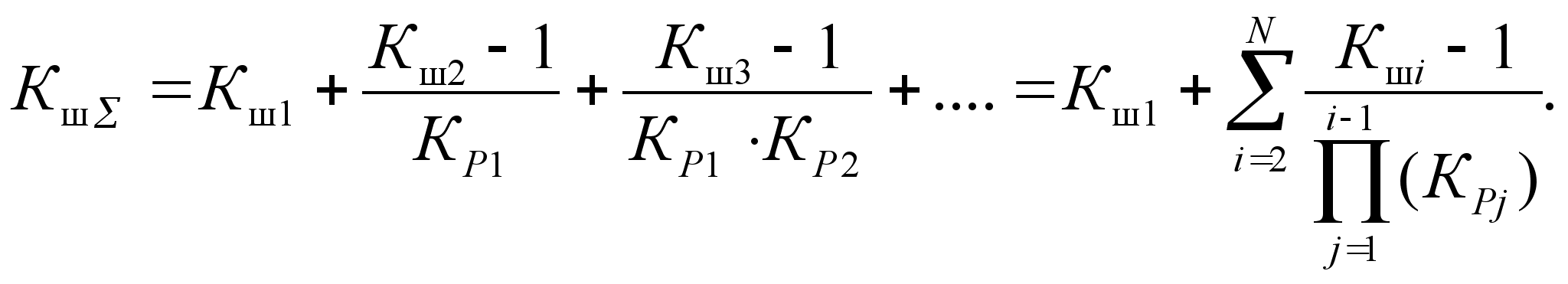 Коэффициент шума цепочки N каскадно включённых четырёхполюсников, обладающих усилением