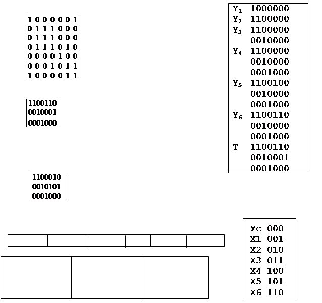| Исходное состоя-ние | Состоя-ние перехода | Условие перехода | Выходные сигналы | Код исходно-го состоя-ния | Код перехода | Функция возбуж-дения памяти |