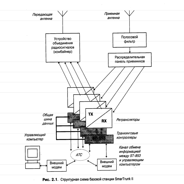 Структурная схема базового оборудования 4-канальной системы SmarTrunk II с контроллерами ST-853 приведена на рис. 2.1.