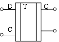 D – триггер, называемый еще триггером задержки может быть асинхронным и синхронным, но асинхронный D – триггер смысла не имеет, т.к. имеет один информационный вход D и основной и инверсный выходы. Сигнал (информация ) на выходе всегда совпадает с информацией на входе, т.е. Qt+1 = Dt. Смысл имеет только синхронный D – триггер, у которого кроме информационного входа D есть вход синхронизации С. Информация со входа D передается на основной выход (записывается в триггер) в момент прихода синхронизирующего импульса. Структурная формула, описывающая работу синхронного D – триггера следующая: