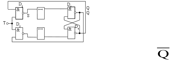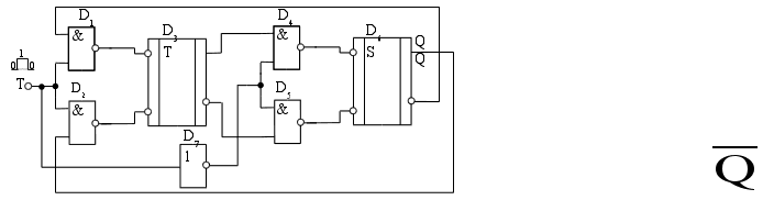 Несинхронный Т – триггер имеет один вход Т, основной и инверсный выходы. Входной импульс переключает триггер в противоположное состояние. Структурная формула, описывающая работу Т- триггера имеет следующий вид: