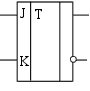 Несинхронный JK – триггер имеет два входа J и K, основной и инверсные входы. Вход J аналогичен входу S RS – триггера. По этому входу триггер устанавливается в состояние «1». По входу K триггер сбрасывается в «0», как и RS – триггер по входу R. Отличие от RS – триггера состоит в том, что этот триггер не имеет запрещенных комбинаций сигналов на входах, а при подаче управляющих сигналов одновременно на оба входа триггер переключается в противоположное состояние. Синхронный JK – триггер имеет еще один вход С – вход синхронизации и переключается только при подаче импульса на этот вход.