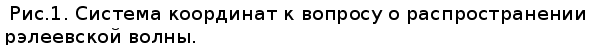 При описании волн Рэлея (7), распространяющихся вдоль границы изотропного упругого полупространства (рис.3), смещение