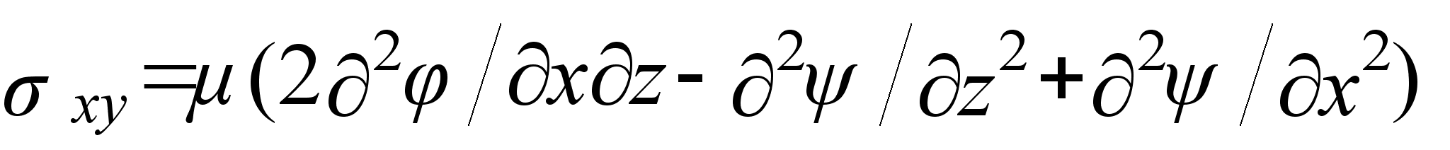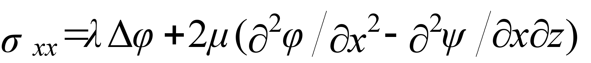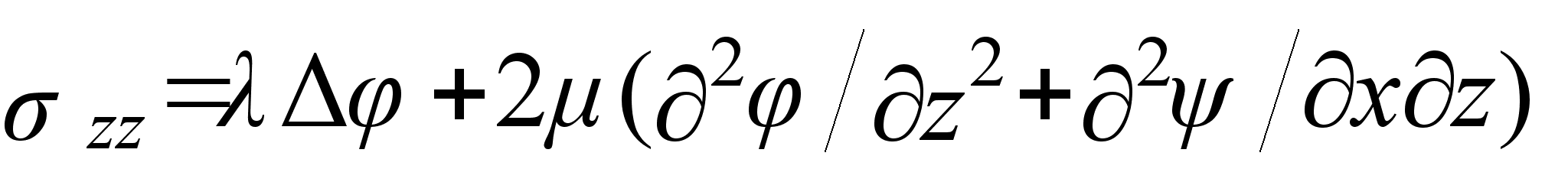 Используя эти выражения и закон Гука для изотропного тела, можно записать отличные от нуля компоненты тензора напряжений: