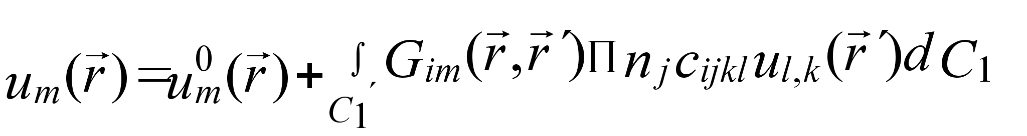 Физический смысл данного уравнения состоит в том, что оно описывает рассеянное поле, возникающее в результате действия на поверхность С2, С1/, С3 (рис.2) ненулевых напряжений, обусловленных наличием препятствий.