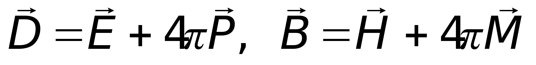 Связь между электрическим смещением и магнитной индукцией, полями и поляризациями среды определяется соотношениями