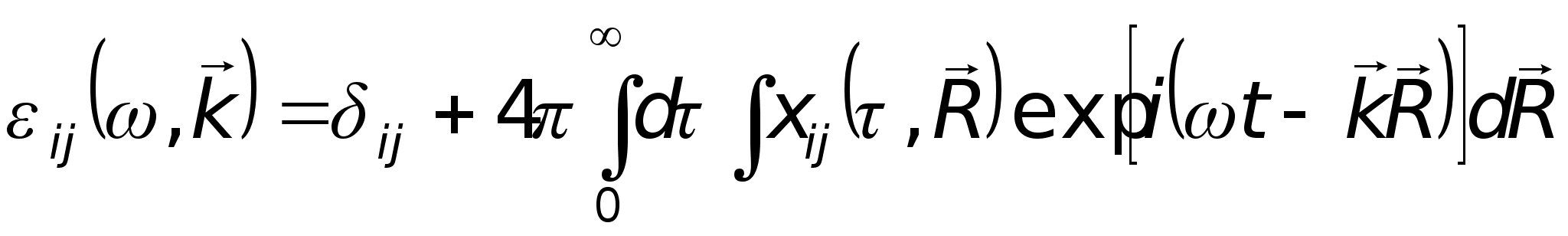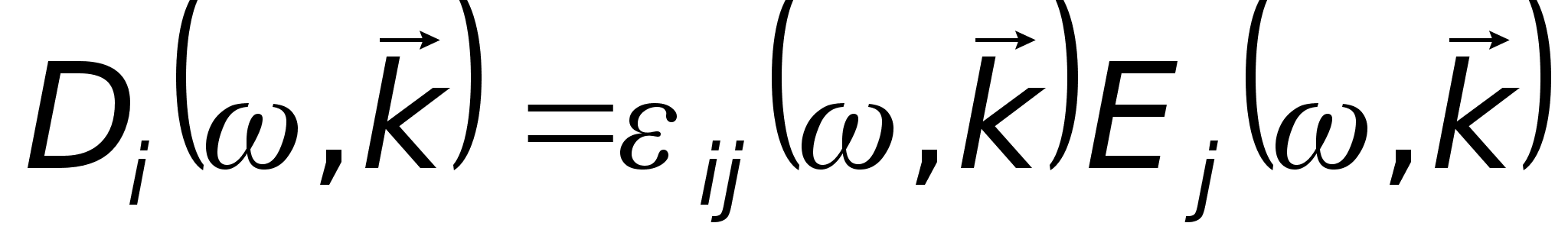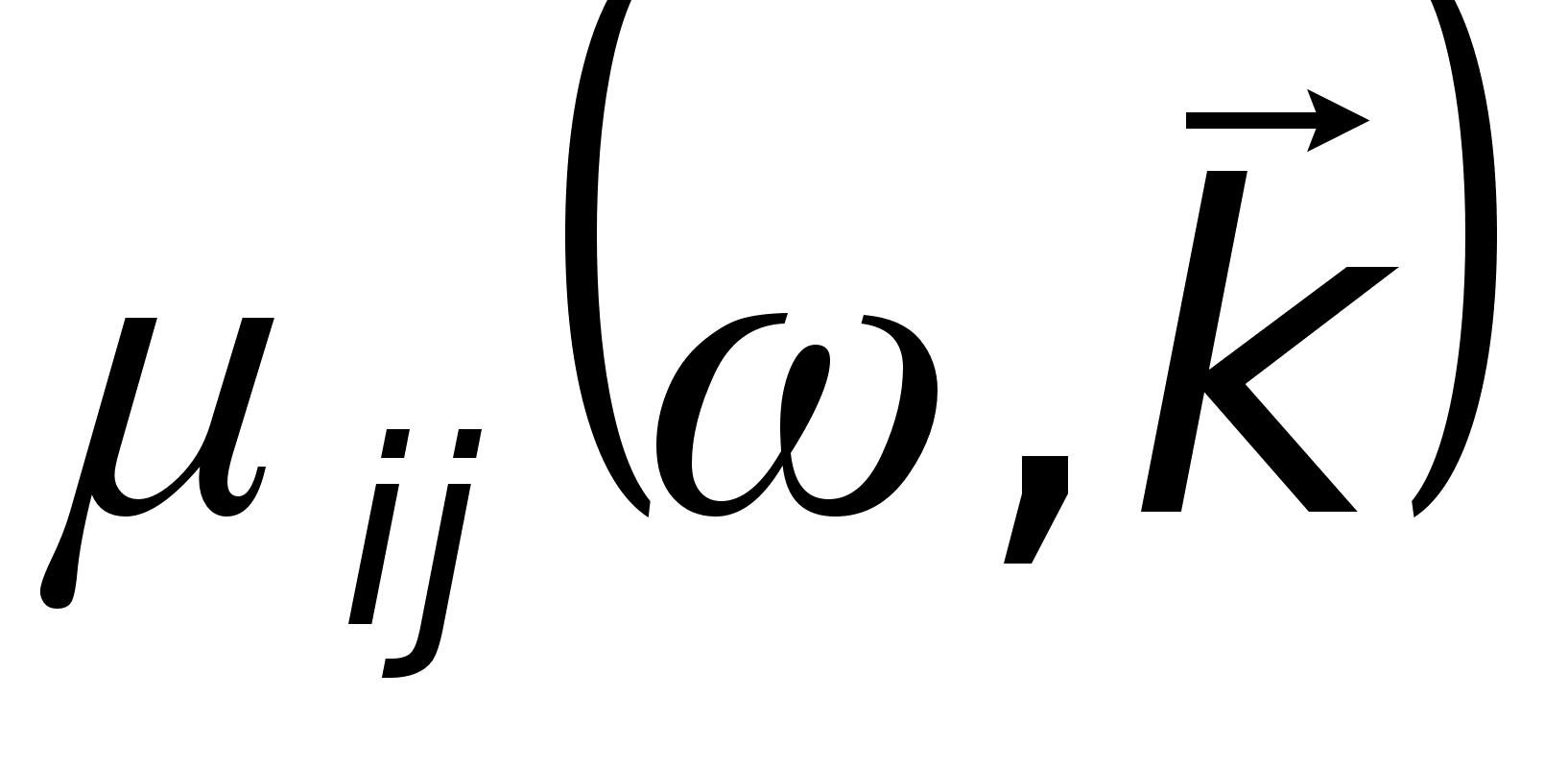 Видно, что компоненты тензора диэлектрической проницаемости зависят в общем случае от частоты и от волнового вектора волны.