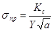 K – коэфициент интенсивности напряжений. Kc критическое значение K для данного материала (характеризует сопротивление материала, трещиностойкость, часто называется вязкостью разрушения)