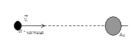 В нашем опыте нужно исследовать α – частицу, которая направлена на ядро золота при составлении угла 180° (рис. 2) и проследить за реакцией α – частицы, т.е. на какое минимальное расстояние α – частица приблизится к ядру золота (рис. 3).