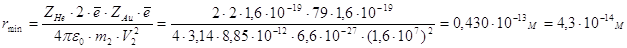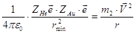 Какое минимальное расстояние rmin между α – частицей и ядром удастся реализовать в данном эксперименте? (Рис. 4)