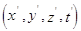 Наша задача в точной формулировке сводится к следующему. Каковы значения х', у', z',t' некоторого события относительно системы К', если заданы значения х, у, z, t того же события относительно системы К? Соотношения должны быть выбраны так, чтобы для одного и того же светового луча (причем для любого) относительно К и К' выполнялся закон распространения света в пустоте. Эта задача пространственного расположения систем координат решается следующими уравнениями: