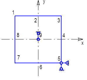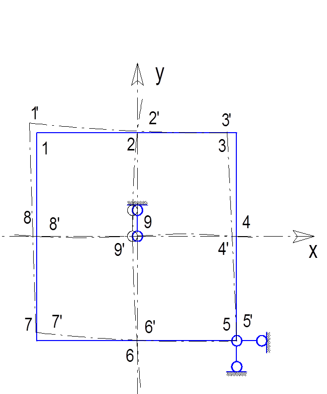 Покажем деформированное состояние пластины определив для этого перемещение в 9-ти точках.