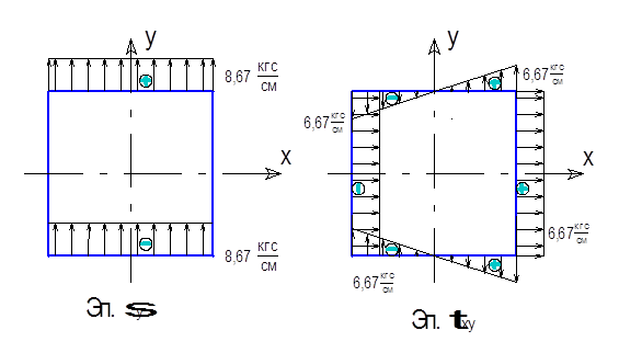 Из тела находящегося в плоском напряженном состоянии, выделена пластина, толщина которой 1 см, размеры в плане 20х20 см.