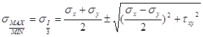 В этой точке напряжения в основных площадках. sх=0, sу=-1,33, tху=3,33,