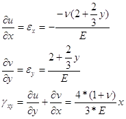 С учетом получения выражений для j(у) и y(х) компоненты перемещений имеет вид