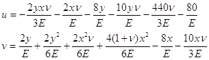 Окончательные выражения для функций перемещений u и v