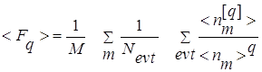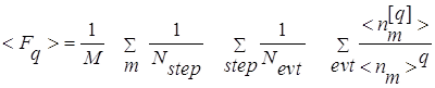 Для достижения статистической точности факториальных моментов Fq’ые индивидуальных ячеек определенные в формуле (6) , усреднены по событиям и по М. ячейкам (“ вертикальный анализ ”). Вертикально (по событиям) усредненные моменты могут быть определены как двойное среднее число: