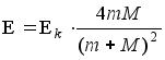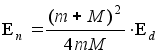 Если первичная частица имеет кинетическую энергию Ек и массу m , а масса атома (иона) М ,то при парном лобовом соударении в не-релятивистском приближении смещаемый из узла кристаллической, решетки атом (ион) приобретает энергию