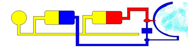 Здесь поднимают давление до требуемых величин, путём сжигания химического топлива