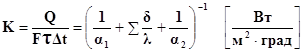 К – коэф. теплопередачі