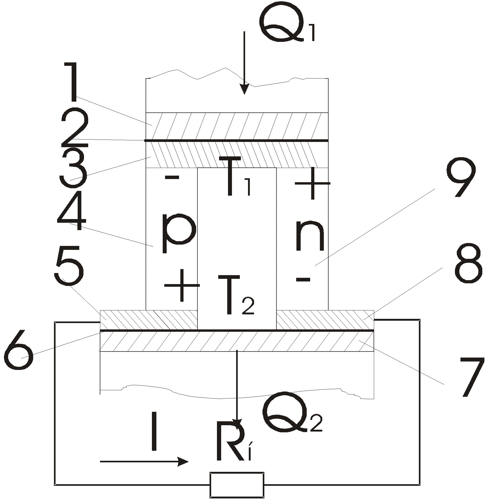 Рис. 1. Принципиальная схема элементарного полупроводникового ТЭГ