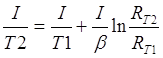 Если b и RT1 известны, то это уравнение можно преобразовать и использовать для вычисления температуры, измеряя сопротивление: