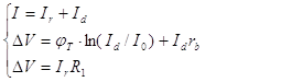 where I is an input current of CVC, V is a voltage drop on the CVC circuit, Ir is a current flowing through the resistor R1, Id is a current passing through the diode D1, I0 is a leakage current of the diode, rb is a bulk resistance of the diode. Here
