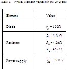 If V>750mV, the diode D1 is in active mode and while r <<R1 the condition Ir <<Id is true. So, in the large current region IId and Equation (2) determines an almost linear dependence between I and V. For instance, if the maximal voltage drop Vmax =900mV and maximal input current Imax=2mA, then in accordance with the Equation (2) r 100. Typical element values for the OVD circuit with Vth =400mV are given in Table 1.