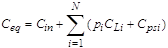 Let i is a probability of the i-th gate being in the state of high output potential. In this state the capacitance CLi is connected with power supply bus through the low channel resistance of turned-on transistors in PMOS network of the i-th gate. Then equivalent capacitance Ceq connected to the OVD circuit input equals