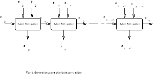 Let us have a look inside RCA. As it was mentioned above RCA consists of one-bit full adders and each full adder consists of two parts: forming sum i part and forming carry ci+1 part (Fig.16).